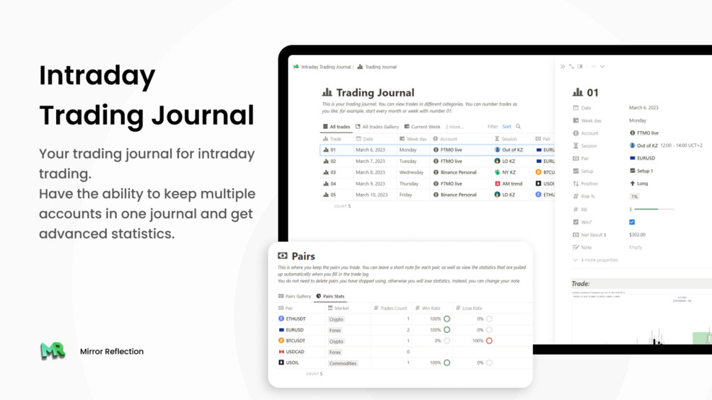 Your trading journal for intraday trading with the ability to keep multiple accounts in one space and get advance statistics.